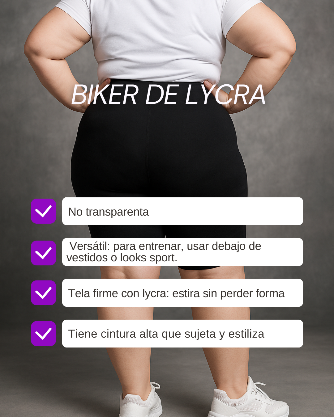 Nuestra biker básica favorita: suave, cómoda y con una elasticidad increíble. Confeccionada con lycra, acompaña tus movimientos sin ajustar de más y sin transparentar. Ideal para el día a día, entrenar, usar debajo de vestidos o armar looks urbanos.
