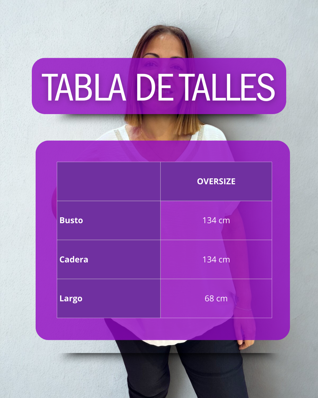 El calce es oversize real, amplio, cómodo y perfecto para usar tanto de día como de noche.
