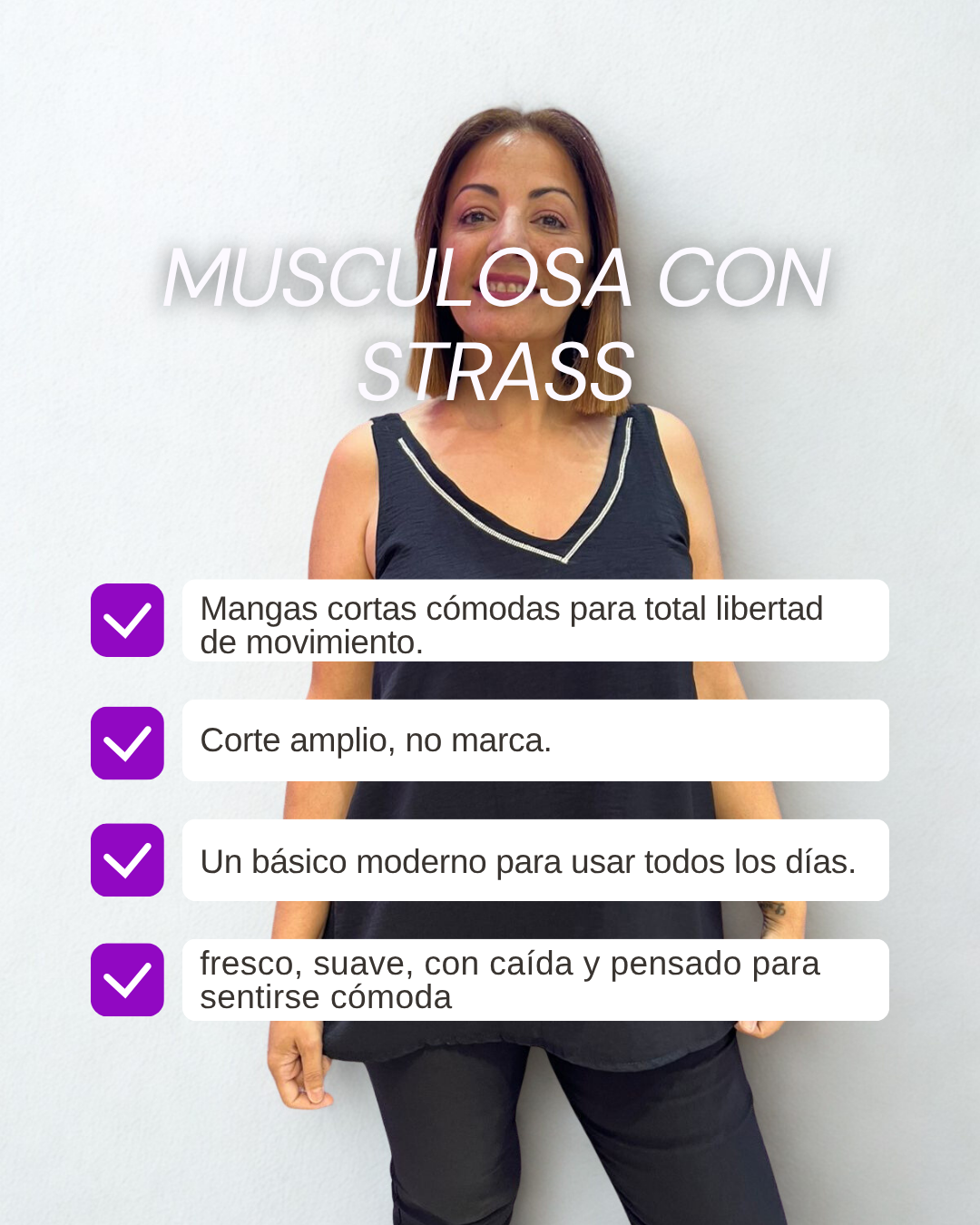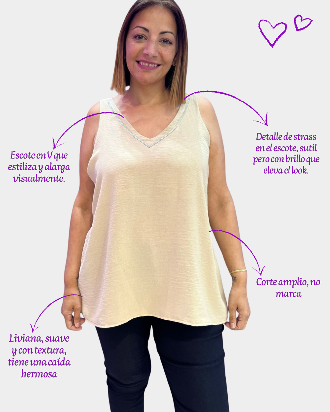Musculosa Escote V con Strass – Básica, fresca y con brillo justo