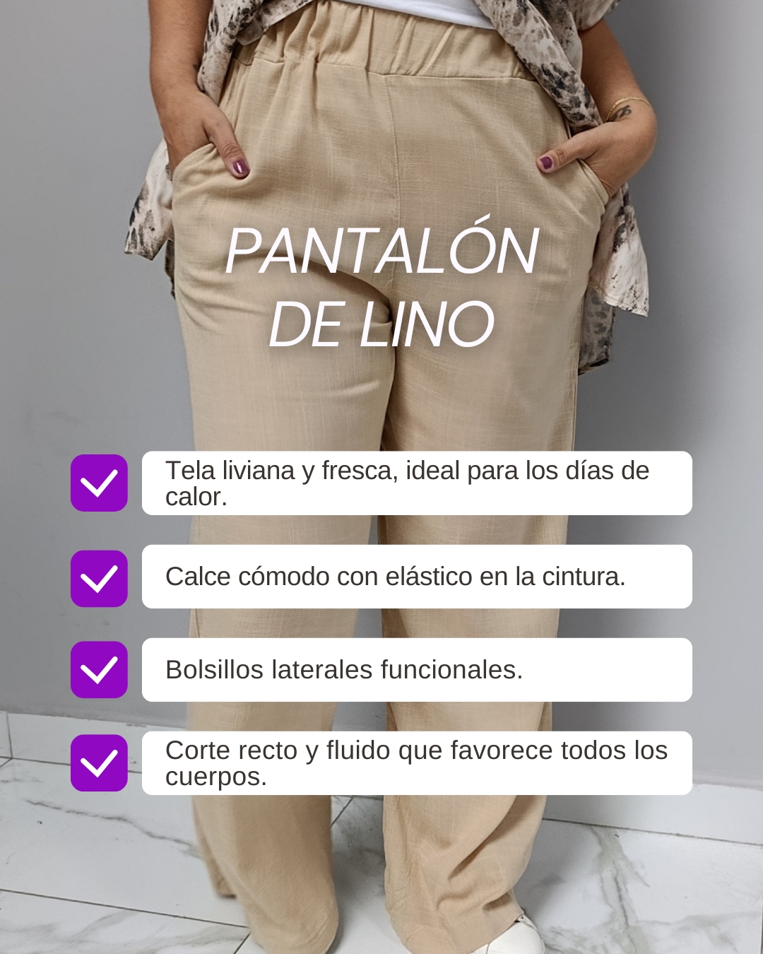 Comodidad, frescura y estilo en una sola prenda. Nuestro pantalón de lino liso es ese básico infalible que se adapta a todos tus planes, desde un look relajado con remera hasta uno más chic con camisa o blazer.